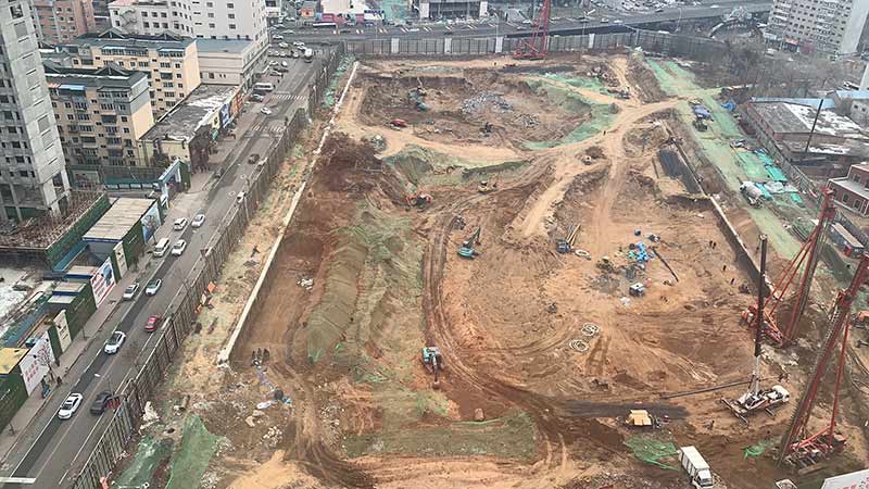 本站訊:由沈陽帝鉑建筑工程有限公司承建的沈陽華潤皇姑置地廣場3期基坑支護(hù)及降水工程(即華潤沈陽皇姑萬象匯項目)已于2019年11月07日開始全面施工,預(yù)計2020年2月末完成基坑支護(hù)工作。本項目位于沈陽市皇姑區(qū),東臨鴨綠江東街,南鄰崇山東路(北一環(huán),地下為地鐵10號線),北至錫山路,基坑周邊環(huán)境復(fù)雜,基坑安全等級為一級?;娱_挖面積為26000㎡,開挖深度為15.5m,合同額1300萬。本項目基坑支護(hù)及降水施工全部為冬季施工,難度非常大,目前已完成大部分支護(hù)樁施工,錨索和噴護(hù)工程正在有序展開。