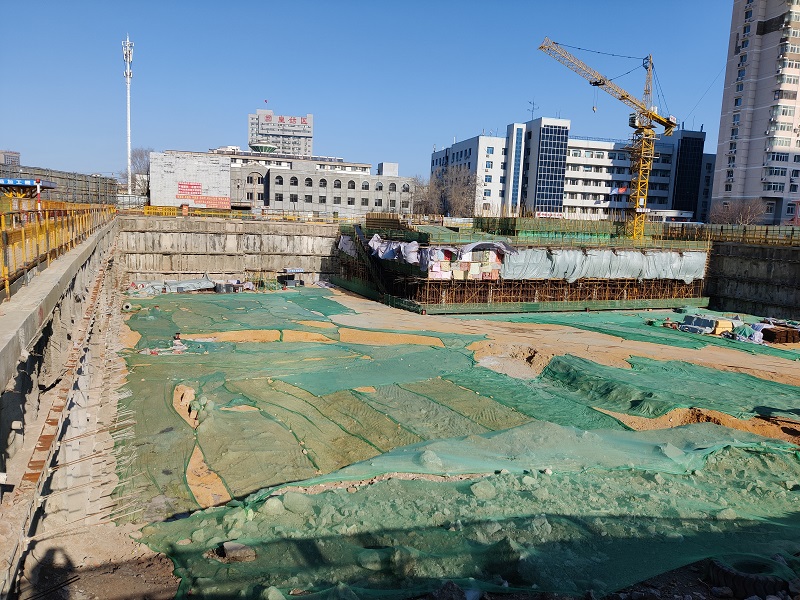 基坑目前已完成全部支護樁施工,完成90%錨索和噴護施工,大部分基坑已開挖至坑底,僅剩土方坡道處未施工。根據(jù)基坑監(jiān)測單位提供的數(shù)據(jù),基坑經過越冬后基坑變形都在設計允許范圍內,基坑施工質量滿足規(guī)范及圖紙要求,并多次在萬科集團地下評估中取得好成績,進入集團評估紅榜。